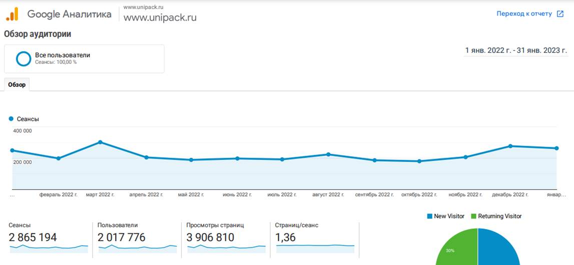 Отраслевой портал Unipack.Ru был создан в 1999 г., и уже более 24 года лет остается лидером среди информационных и рекламных ресурсов упаковочной отрасли в сети Интернет, как по объему информации, так и по популярности среди пользователей. Портал хорошо известен среди производителей и потребителей упаковочной отрасли. Он широко рекламируется в сети Интернет, на всех упаковочных выставках, в печатных средствах массовой информации. Посещаемость нашего портала составляет около 200 тыс. посетителей в месяц, в т.ч. 20% посетителей из дальнего зарубежья.